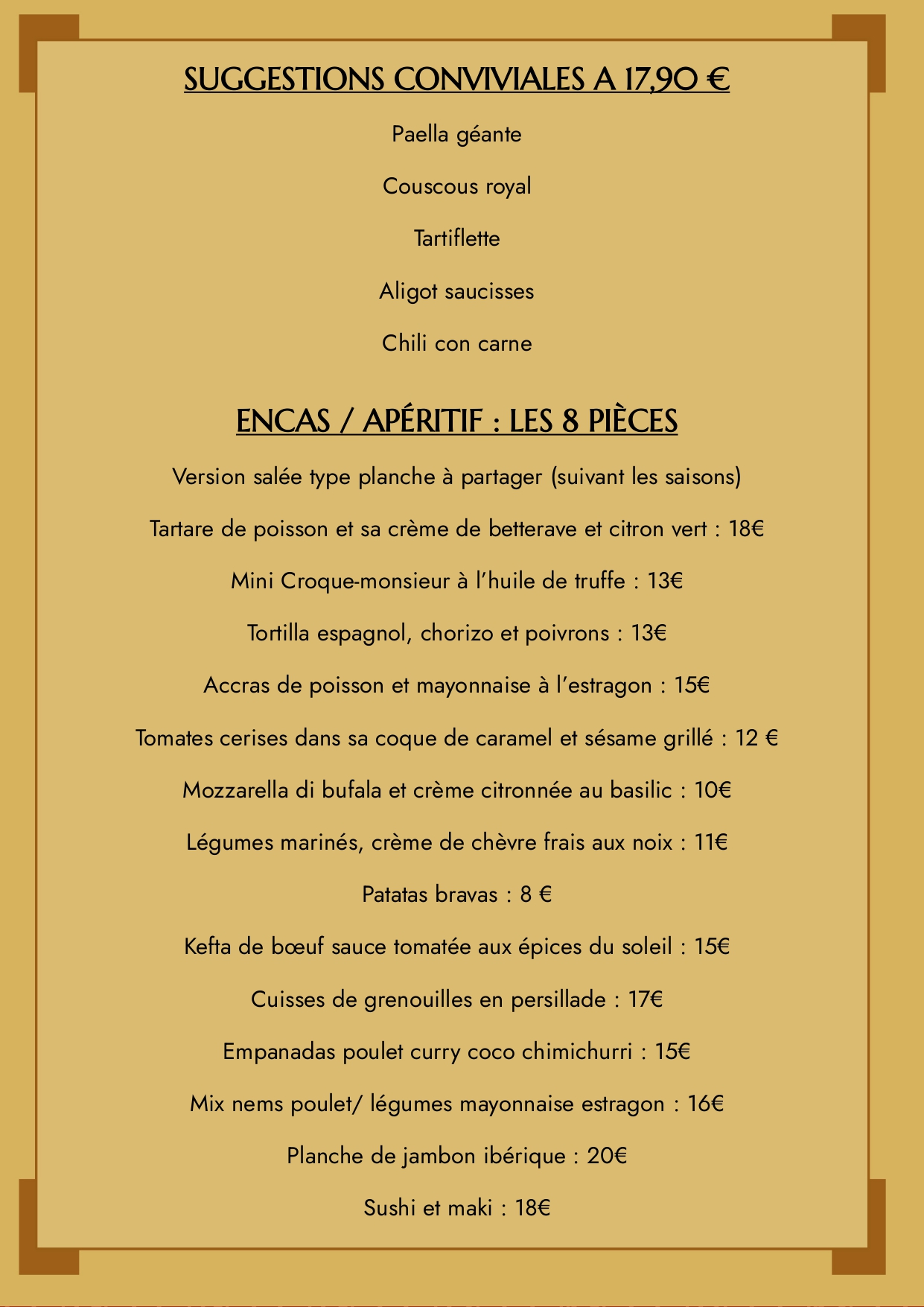 Que ce soit pour un événement professionnel ou une occasion privée, notre restaurant vous accompagne dans la réussite de votre moment. Découvrez notre carte en ligne et choisissez les plats qui correspondent le mieux à vos envies et à celles de vos invités. Nous proposons également un service traiteur sur mesure, idéal pour vos réunions, séminaires, anniversaires, réceptions ou tout autre événement. Notre équipe met son savoir-faire à votre service pour offrir une expérience culinaire de qualité, adaptée à vos besoins. N’hésitez pas à nous contacter pour toute demande d’information ou pour une formule personnalisée.